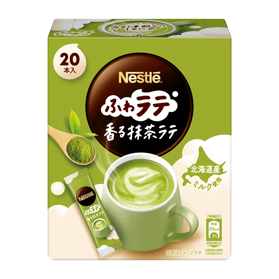 コーンシロップ(国内製造)、植物油脂、抹茶(宇治茶)、脱脂粉乳、デキストリン、乳糖、カゼイン、食塩/pH調整剤、炭酸カルシウム、甘味料(アスパルテーム・L-フェニルアラニン化合物、アセスルファムK)、カゼインNa、クチナシ色素、香料